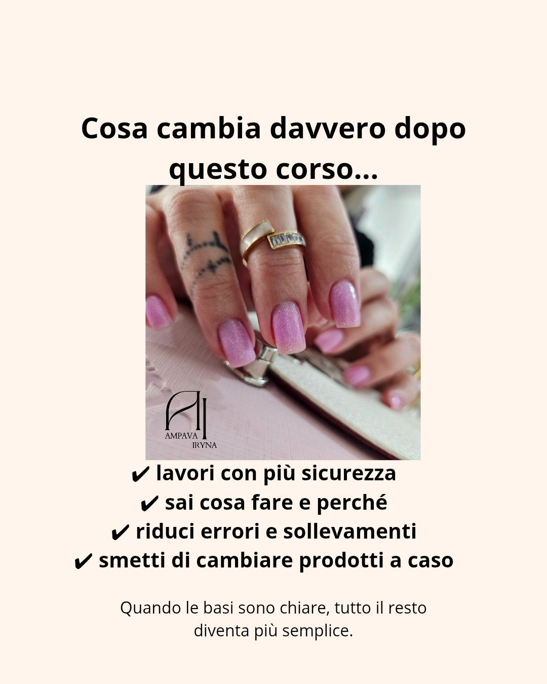 Corso professionale in presenza a numero chiuso, con gruppo ristretto (max 4 corsiste), pensato per migliorare tecnica, metodo e sicurezza nel lavoro quotidiano.