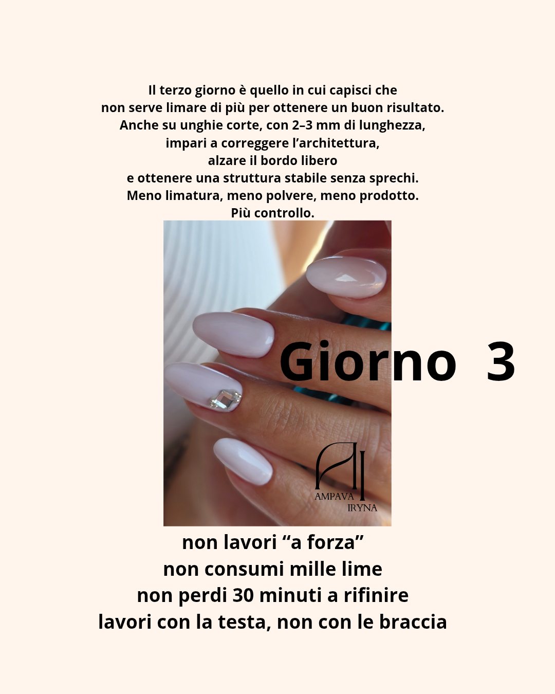 È richiesta 1 modella per la parte pratica, una modella per due corsiste. E anche se lavorerà sulla mano propria. Primo giorno sulla mano propria e secondo e terzo giorno serve la modella. E a carico della cosista…