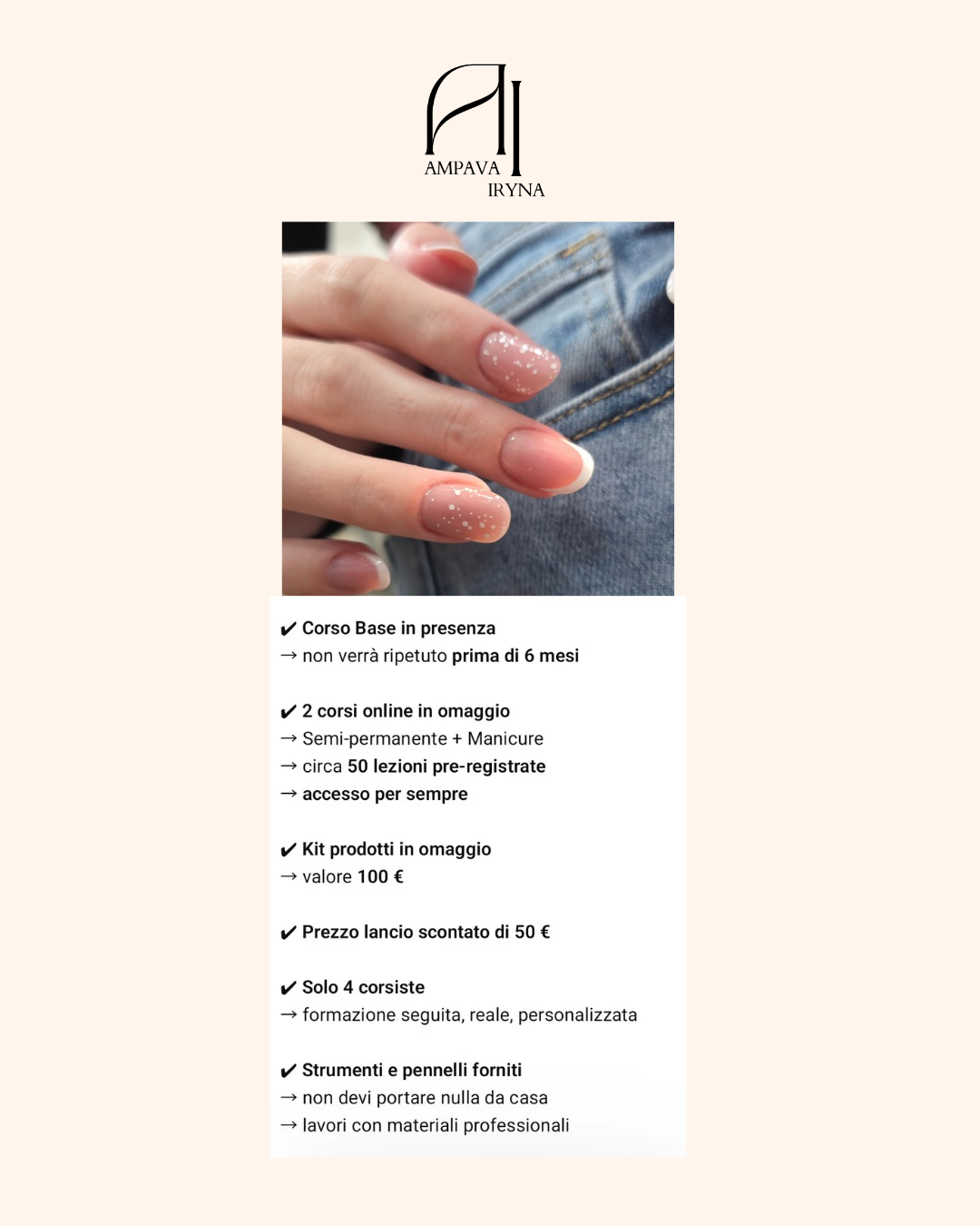 * Accesso al corso. Manicure e semi permanente, versione online, circa 50 lezioni, valore 100€